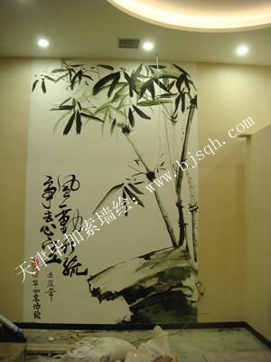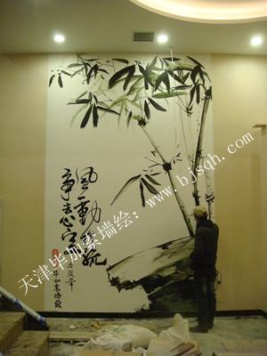 飯館水墨畫竹子