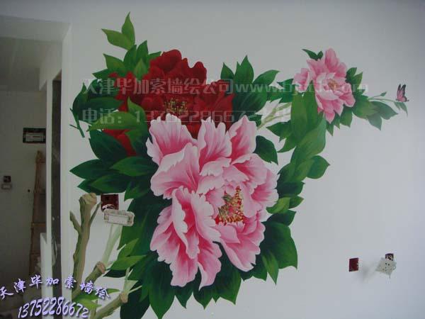 福建里影視墻牡丹彩繪